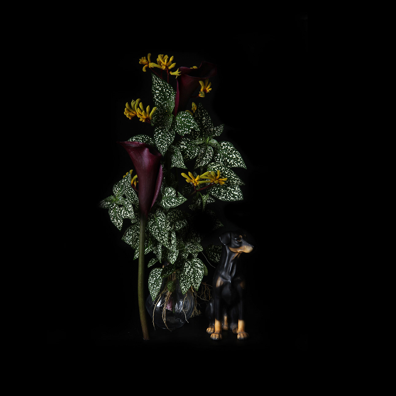 Doberman and Flowers